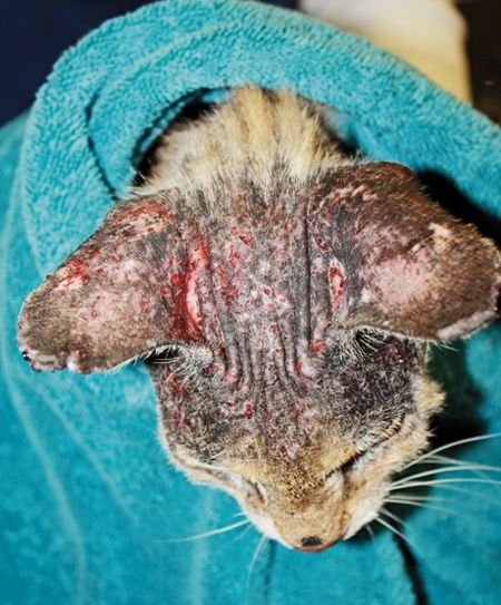 I feed several feral cats. Im 16 blind and diabetic. Hey there so my 10yo female cat is losing hair on hair ears.